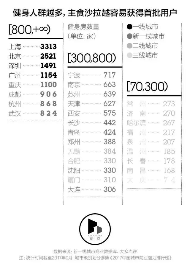 是否有足够的健身人群,是沙拉品牌决定是否在一个城市启动业务的重要考量因素。